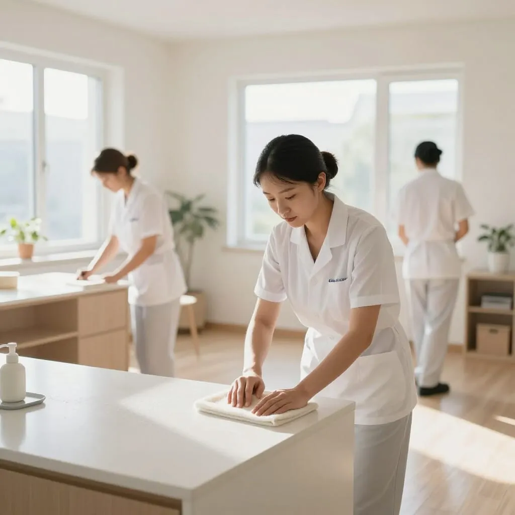 - Поддерживающая (регулярная) уборка: Плановое наведение порядка для поддержания чистоты после генеральной уборки. Включает удаление пыли со всех поверхностей, влажную уборку полов, чистку ковров пылесосом, мойку зеркал и стеклянных поверхностей, вынос мусора, легкую уборку санузла и кухни.